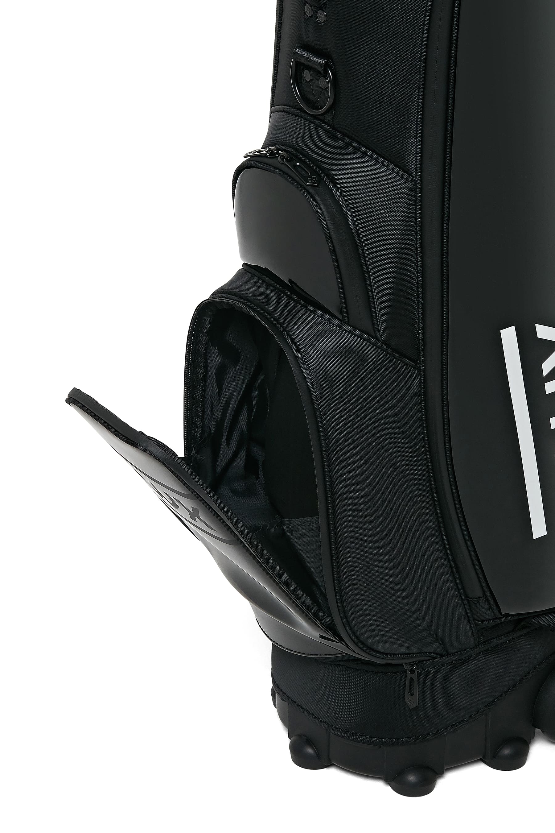 올블랙 컬러로 세련미를 어필했으며 포켓마다 다른 원단을 사용해 포인트를 줌
